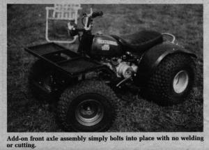 "ATV's are much safer when they've got 4 wheels and you'll spend a lot less by converting than if you buy a new machine," notes Moritz.