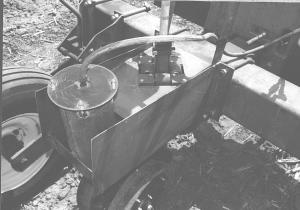 To build the test unit, Litchfield used the support wheels and æV' closing wheels off an old Deere corn planter, the seed box off an Allis-Chalmers planter, and the gauge wheels off an International planter.