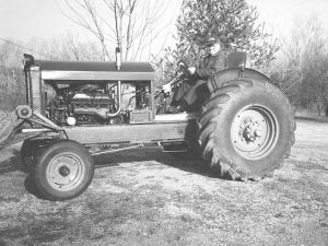 Workman repowered "Ol' Gertie" with a 360 cu. in. V-8 engine and 4-speed transmission out of a 1971 Ford 1-ton truck. Front and rear wheels were purchased and rear wheels were fitted with 18.4 by 26-in. tires off an Allis Chalmers Gleaner combine.
