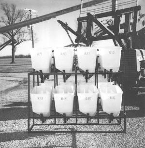 When Eddie Newell, Bonnie, Ill., sold his drill and bought a Kinze 16-row twin-line corn and bean planter, he bought an extra set of seed boxes so he wouldn't have to change meters or clean out the boxes every time he switched from corn to beans and back. He also built a steel rack to hold the extra boxes. The rack is fitted with brackets that attach to the side of his truck.