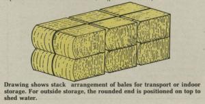 The Agropack produces a rectangular bale with one rounded end that's about the size and density of conventional big round bales. The advantage of the design is that you can stack bales flat for storage or transport, or stand them on end in the field with the rounded end up for weather-resistant outdoor storage.