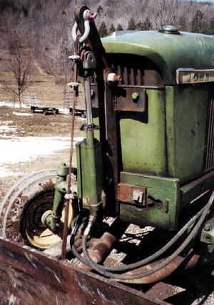"I didn't have to modify the tractor at all," says Miller. "I use it to grade my driveway and to clear away snow. It works like a bull dozer and will cut right through dirt and hard packed snow. The bottom of the blade is equipped with steel ęshoes' that keep the blade about a half inch off the ground. The blade can be tilted up to 28 degrees from side to side. That's not quite as much as I'd like because I often have to go to the side of the driveway in order to dump off material. I kept the angle to 28 degrees because I was worried that a sharper angle might cause too much stress on the tractor's front end."