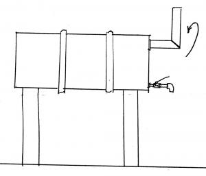 Allan S. Maclean, Kingston, Ont.: "Waste oil can be stored in horizontally mounted 45 gal. drums by installing a piece of 2-in. pipe formed into a 90? elbow. Screw one end into the 2-in. hole, swinging it up to fill and down for a rain-proof vent. A 3/4-in. ball valve installed in the lower 3/4-in. tapped hole is used to draw off the oil."