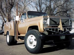 The rig is equipped with the pickup's original cab guard and has a stainless steel muffler on one side. An extra step was added onto each side in order to make it easier to climb up into the cab. The last step was to add six coats of metallic gold paint - the only job that Swets didn't do himself.