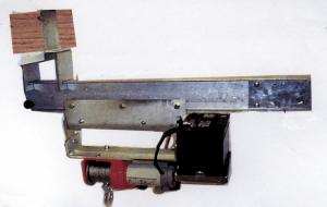 A hand-held control activates a 12-volt battery-operated hoist.