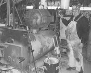 First he made certain the tank was clear of any old gas. Then he removed all the valves and gauges, closed off all the openings, and installed six 3-in. dia. horizontal pipes inside the tank, through which hot air is blown. He used a torch to cut openings in the end of the tank for the pipes.