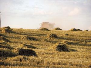 Giant Combine "Pitch Fork" Leaves Residue In Piles