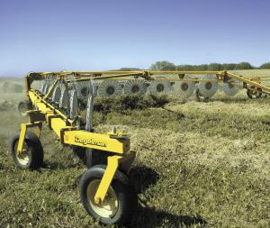 "All of these rakes are designed and built to handle large volumes of hay at fast speeds, shorten drying time and increase productivity," Degelman says. "They're built to last. The frame is made from heavy duty 5 by 5-in. structural tubing, compared to others' standard 4 by 4-in. tubing."