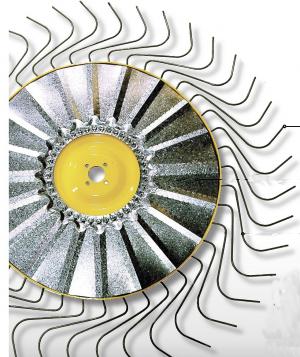 While most other hay rakes have 55-in. wheels, the Degelman VR Series boasts 62-in. wheels, which mean it can cover more ground in less time. Other payoffs include easier rolling and better material flow in heavy or wet conditions.