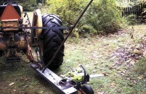 "When the tree is cut, you want to be able to direct the way it falls, so there's a fixed arm that pushes it away from the tractor," he explains. "The system works best with a chainsaw with at least a 16 to 18-in. bar. Mine has an 18-in. bar."