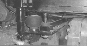 The kit consists of a pair of air bags and shocks and a lateral control rod, which all mount on a metal bracket. The bracket slides in under the rear part of the cab in place of the original factory cab mounting bracket, which rigid mounts to the tractor's cab and transmission housing. Metal shields cover everything but the shocks to keep corn stalks and other debris from getting under the cab.