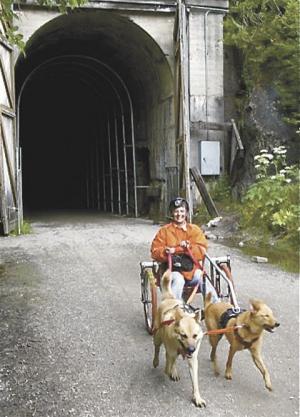 Lewis started running dog-pulled scooters several years ago when she owned a smart Rottweiler that "needed something to do". She adapted a thrift store scooter, then discovered there were dog scooters on the market and that people race with them. "It's like skijouring on wheels," she says. Lewis created a company, DogScooter, located in Washington, selling scooters online.