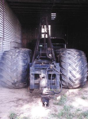 "At first we tried using the tractor's pto to drive a truck transmission, but the transmission couldn't handle the torque. The sides of the gearcase split out, and the driveshaft got bent so bad it almost looked like a pretzel. So we switched to hydraulics."
