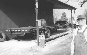 He used the bed from a 35-ft. semi trailer as a platform and installed four load cells under it, one at each corner. He paid $50 for a used semi trailer bed, which he cut back to 25 ft. He also widened the bed 1 ft. on each side to a width of 11 ft. A read-out monitor at one corner of the scale is enclosed in a weatherproof metal box.