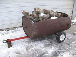Fuel Barrel Trailer Hauls Wood