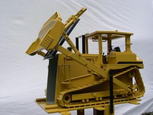 Welds are hidden inside. He made jigs to bend some of the pieces such as the tracks ł complete with the sag that is in real dozer tracks.
