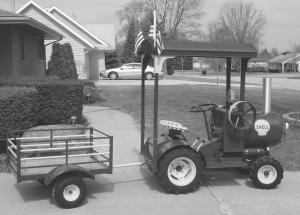 "I didn't use plans to build the tractor to scale, but just pieced it together as I went along," says Schiller, who also built a 2-wheeled trailer to pull behind the tractor.