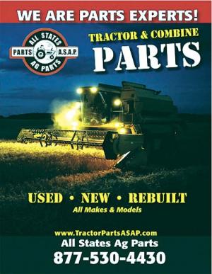 Fresh Inventory Makes All States A Great Used Parts Source SPECIALTY/SERVICES All States Ag Parts is one of the largest suppliers of used new and rebuilt tractor and combine parts in North America With new salvage tractors and combines arriving daily All States Ag Parts is able to keep up with the high demand for used parts for both antique and late model tractors “We have three full-time salvage buyers and they do a fantastic job of keeping us stocked with the parts that today’s farmers need to keep running With tighter parts inventories at the local dealerships our used parts not only save a farmer money but also precious time because our parts are on the shelf and ready to be used now ” says John Dyke CEO of All States Ag Parts Once a tractor combine or other piece of ag equipment is delivered to one of the stores it hits the teardown shop In the teardown shop all the critical parts are taken off the machinery and inspected by skilled mechanics Once the part passes inspection it’s cleaned up labeled and stored inside one of warehouses until a farmer or repair shop needs it explains Dyke “Our inspection process is extremely important We want all of our parts to work when the farmer gets them installed For those rare occasions when an inspected part does fail we offer a 1-year replacement warranty on all of our used parts ” The shells of torn-down tractors and combines are then moved into the salvage yard where they remain until being sent to a metal recycling plant All States recycles all of the unused metal parts oil anti-freeze tires and other materials from every piece of equipment that goes through their yard “It’s not only good business but when you serve an industry that relies the earth’s resources we need to do the best we can to conserve those resources ” says Dyke All States Ag Parts also rebuilds many used parts as well “There are often parts that hit our salvage yard that do not pass our used parts inspection process due to bad seals worn gears cracked housings and a variety of other reasons Many of these parts are sent to one of our rebuild shops where mechanics completely tear down the part and replace all of the worn or broken components ” says Dyke “Once we’re done rebuilding it the part will meet or exceed the original OEM specs ” Chad Bagby New Parts Division Manager says “Even with our huge used parts inventory and our parts rebuilding program we still have parts that are simply not available in sufficient quantity That’s when I get involved in finding sources for new aftermarket parts ” All States produces a free 344-page catalog featuring their new aftermarket parts and most of their rebuilt parts You can contact All States Ag Parts at 877-530-4430 or on the web at: www TractorPartsASAP com All-States has 7 salvage yards in various parts of the Midwest You can contact the individual yards listed below or just call 877-530-4430 and you’ll be automatically directed to the location nearest to you Downing Tractor Parts E1140 State Road 170 Downing WI 54734 Manager: Dan Hellendrung Phone: 877-530-1010 toll-free Fax: 715-643-2729 Email: dtp@asapagparts com Salem Tractor Parts 25325 U S Highway 81 Salem SD 57058 Manager: Dave Arens Phone: 877-530-4010 toll-free Fax: 605-425-3027 Email: stp@asapagparts com Wisconsin Tractor Parts West 5674 County Road A Black Creek WI 54106 Manager: Mike Bloom Phone: 877-530-2010 toll-free Fax: 920-984-3142 Email: wtp@asapagparts com Ft Atkinson Tractor Parts 2645 Highway 24 North Ft Atkinson IA 52144 Manager: John Berger Phone: 877-530-3010 toll-free Fax: 563-534-7287 Email: ftp@asapagparts com Missouri Tractor Parts 1078 US Hwy 62 East Sikeston MO 63801 Manager: Greg Davis Phone: 877-530-7720 toll-free Fax: 573-471-2288 Email: mtp@asapagparts com Bridgeport Tractor Parts 9936 US Highway 385 Bridgeport NE 69336 Manager: George Lunniss Phone: 877-530-5010 toll-free Fax: 308-262-0751 Email: btp@asapagparts com Hendricks Tractor Parts 408 South Division Hendricks MN 56136 Manager: Dirk Pearson Phone: 877-530-6620 toll-free Fax: 507-275-3932 Email: htp@asapagparts com