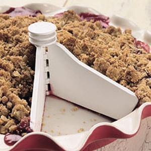 It consists of a pair of hinged, 4-in. silicone “wings” that easily adjust to any angle and open to 8 in. Also works great for tarts, casseroles and other baked goods.