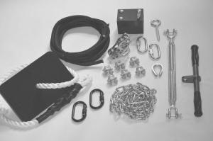 Backyard Zipline kits come with or without cable, giving buyers the option of buying the cable (from 3/16-in. to 3/8-in.) locally.
