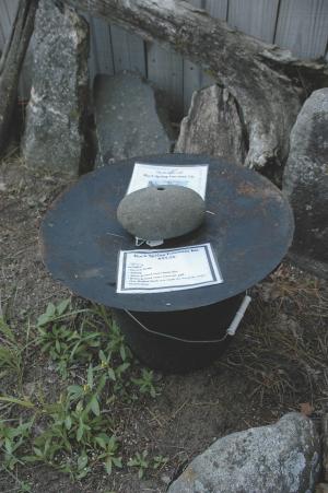 The kit includes a disc blade, a 5-gal. bucket, a small circulating pump, plastic tubing and one rock with a hole drilled through the center of it.