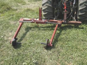 Round bales (4 by 5-ft.) fit perfectly between the rows, says co-owner Eric Plaksin. But anyone who has rolled a bale by hand knows that bales don’t always roll straight and can be difficult to push. John Wilhoit, extension specialist from the University of Kentucky, came up with the tractor-pulled bale unroller after he heard Plaksin and his wife speak at a farming conference. Wilhoit even brought his prototype to Waterpenny Farm to demonstrate last year. The tractor straddles the garden row as the implement unrolls the bale between rows. One person walks behind to make sure the hay comes off correctly.