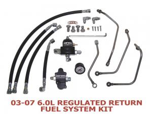 The kit eliminates the dead-head stock fuel rails and provides adjustable fuel pressure. It ties the ends of the fuel rails through a bypass fuel pressure regulator. Larger, high-flow units that eliminate restrictive check valves replace stock fuel lines and banjo bolts.