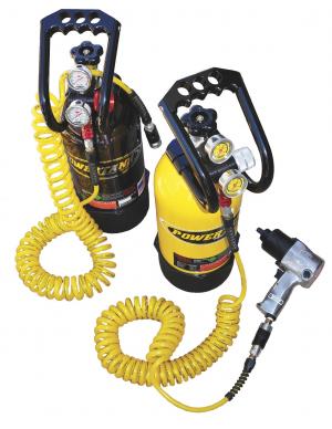 Whether using an impact wrench or just filling tires, a 10-lb., 1.8-gal. Power Tank filled with CO2 equals the useable air in forty 10-gal. air tanks. Steve Sasaki says his Power Tanks are the perfect answer for adjusting air pressure or making repairs out in the field.
