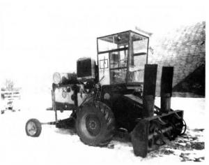 "I think a snowblower like mine could be mounted on any combine. A quick tach setup could be used so you wouldn't have to strip down the combine, and so you could take the blower on or off just like switching heads. I didn't have any reason to set mine up that way because the combine's internal parts were worn out."