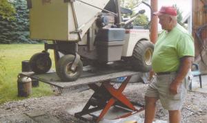 “I have a sideline business mowing cemeteries, town yards and country yards so I use this lift a lot to do general service work on the mowers. To operate the lift I just plug in the cord and step on a pedal. It’s rated at 1,500 lbs. but has no problem lifting my mowers, which weigh 1,620 lbs. each.”