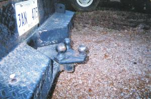 The 3-ball steel plate has a solid shaft welded on at the bottom that fits into a slightly bigger heavy wall pipe, which is welded onto an L-shaped piece that fits into the receiver hitch.