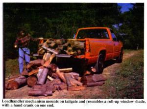 The Loadhandler mechanism resembles a roll-up window shade, with a hand crank on one end. It mounts on the tailgate with-out any drilling, bolting or alterations of any kind. It's fastened to the tailgate with heavy-duty tie-down straps and can be in-stalled or removed in less than a minute.