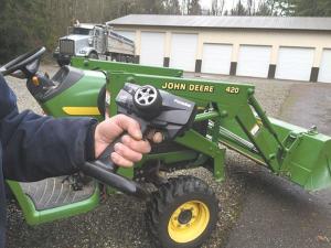 “I did the conversion on my Deere 4210,” says Laine. “The hydrostatic drive and power steering helped keep the project manageable. It eliminated the need for throttle control, as the hydrostatic lets you control speed with a constant throttle setting. All I had to do was control fore and aft direction, speed and steering.”
