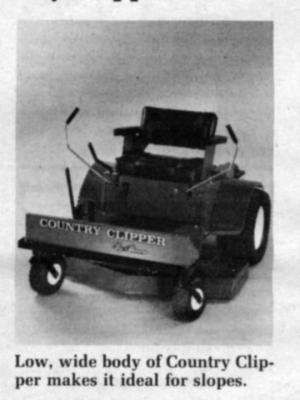 "The low wide body of the Country Clipper makes it extremely stable on slopes. The compact design allows trimming close around and between buildings and obstacles," says sales manager Roy Truax.