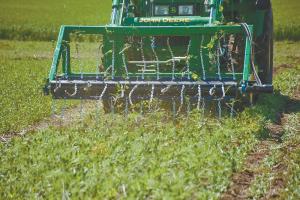The newly developed hail simulator was built by Farming Smarter, a Lethbridge, Alberta research company, to inflict damage on crops in order to evaluate recovery times for different plant varieties. Drum speed is variable and it can be raised or lowered to inflict from 0 to 100 percent damage to crops.