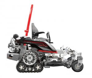 “It is the combination of the large engines, Hydro-Gear transmissions and TRX track system that makes it one of a kind and allows it to go where no traditional zero-turn mower has gone before,” says Bjorkman.