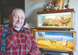 Longtime FARM SHOW reader Dave Olson is likely to run out of wall space before he runs out of ideas for the rural scenes he commemorates in what he calls “memory boxes”. The 83-year-old retired Wisconsin dairy farmer and repair shop owner loves creating farm scenes from his childhood in miniature.
