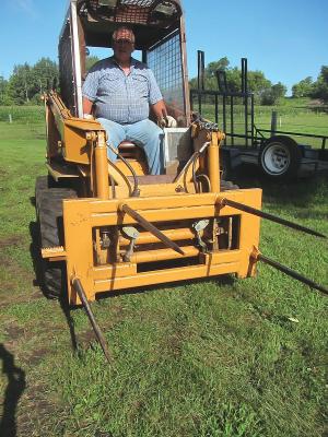 “I use it on my Case 1835 B skid loader. The whirling action of the sickle sections sucks grass in similar to the rotating blades on a lawn mower,” says Majerus. “It was kind of hard to get used to operating it because the operator has to look out to the side to watch for posts and operate the controls at the same time.