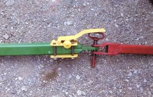 I made this drawbar safety device in 1979 after my 2 1/2-year-old son was killed by a runaway hay bale wagon that broke loose from the tractor pulling it. It bolts onto the implement tongue and is held in place above the drawbar pin by a spring-loaded latch. After all these years it has never failed. (L. Jay Gillis, P.O. Box 198, Beallsville, Penn. 15313 ph 412 997-2775)