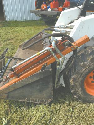 Skid Steer Picks Packs And Piles Rocks ROCK PICKERS Barry Anderson’s skid steer attachment picks up individual large rocks loads them into the bucket and when the bucket is full piles them as high as the loader can go Best of all it requires no bucket or loader modifications “I didn’t want to drill holes or make other modifications to the bucket like other pickers on the market ” says Anderson “I also wanted to be able to dump rocks in a pile Other smaller pull-behind pickers seem to have trouble dumping in piles more than 2 ft high ” Nearly 70 Anderson credits a bad back with forcing him to think about alternatives to picking rocks by hand “I had work done to fuse vertebrae and picking rocks had become difficult ” he says “Sometimes I could only do it for an hour or so ” Anderson figured his old skid steer was the answer He just needed to figure out how to roll rocks into the bucket When he replaced a garage door opener he salvaged the rail cutting it into teeth for a rock fork To keep the rocks from rolling off Anderson cut off the last 25 percent or so of the teeth and welded them back on at an angle Angle iron from an old bed frame was repurposed for the picker frame In order to bolt it to the bucket Anderson removed the hardened bucket edge to expose pre-drilled holes He bolted the picker teeth to a short length of steel pipe using U-bolts and mounted the pipe to the angle iron frame that extended out past the edge of the bucket The pipe rotates in place with the help of a hydraulic cylinder The cylinder mounts to a piece of square tubing that is bolted to the picker frame and extends over the rear of the bucket The ram’s clevis pins to a steel arm fixed to the pipe “When I extend the cylinder the teeth extend down into the dirt under a rock and when I retract it the teeth rotate back to drop the rock in the bucket ” says Anderson “When the bucket is full I can drive to a rock pile raise the arms and dump ” Anderson notes that getting the hydraulic hose lengths right was one of his biggest challenges He used steel pipe for a rigid set of connections from the cylinder to near the bottom of the bucket This considerably reduced the length of hoses needed “It took 3 or 4 tries to get the lengths right but now it works fine ” he says “I can sit in the skid steer and pick rocks much longer than I could by hand ” Contact: FARM SHOW Followup Barry Anderson 170 Skyline Dr Granite Falls Minn 56241 ph 320 564-4500 or 507 828-0613; bkanderson1@mchsi com