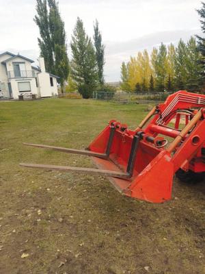 “I use the forks to pick up pallets loaded with everything from firewood to truck parts, and can also use a pallet as a scaffold. The forks can be spaced up to 5 ft. apart,” says McNaughton.