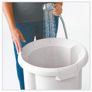 A typical load uses 10 gal. of water - 5 to wash and 5 to rinse. The company says it takes only about 15 min. to wash and rinse a single load, and that only minimal arm strength is needed because gravity does the work on the down-stroke and buoyancy makes the up-stroke easy.