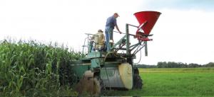 Old Hi-Boy Sprayer Seeds Cover Crops CROPS New Techniques “The conservation district in a nearby county spent nearly $100 000 on a self-propelled sprayer and converted it into a cover crop seeder which got me to thinking I might be able to do the same thing for a whole lot less with an older Hi-Boy sprayer ” says Pennsylvania farmer Jim Kreger Always looking for ways to optimize their investment in farm equipment Jim and his son Zach bought a 40-year-old Deere 6000 Hi-Boy sprayer at a farm auction for $3 000 “The diesel engine ran well and the 4-speed transmission and frame were in good shape so we just needed to convert it into a seeder ” says Jim After removing the spray booms Jim built a frame to mount a fertilizer spin spreader that he bought at Tractor Supply on the lift arms which operate on the rear of the machine like a 3-point tractor hitch The hydraulic pump on the sprayer powers an orbit motor that drives the spreader “The arms lower the spreader so we can fill it with 300 to 400 lbs of seed from the back of a truck then raise it nearly 10 ft high to spread seed across 12 30-in rows in a single pass ” Jim says “The rear wheels straddle 4 30-inch rows and the single front wheel runs in the center Fenders over the wheels split the rows real well The only knockdowns we had were on the ends ” Craig Williams of Penn State Extension helped them calibrate the application rate of perennial rye grass which they applied in mid-August when the corn was fully grown and setting ears “By the time we harvested the corn for silage in late September we had a nice green mat in the field which is exactly what we wanted ” says Jim Seeding into standing corn is definitely better than waiting till after harvest and hoping the crop will establish before freeze up In 2020 they plan to seed tillage radishes in late July and perennial grasses in August so both crops get well-established before silage is harvested Depending on the seeding mix in the spring of 2021 they can burn it down to plant corn or let it grow and harvest the cover crop as forage Jim says the economical seeding rig which he built for about $4 000 not including his time provided two other benefits they hadn’t planned on “The speedometer calculates in hundredths of a mile which gave us an easy way to calibrate seed application Also the operator’s seat is 10 ft off the ground so driving through the field that high up was a great way to scout our fields without using a drone ” Contact: FARM SHOW Followup Jim Kreger 5677 Route 414 Morris Penn 16938 nmkreger@hotmail com