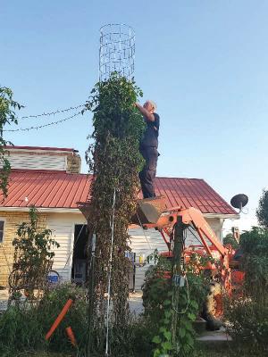 After seeing your article “Giant Tomato Plant Produces Monster Yield” (Vol. 44, No. 1), my coworker and friend Danny Lee sent this picture of his cousin Mike Smith picking tomatoes. His plant grew so tall he had to stand in a raised tractor bucket to reach the top. He had to build a well-supported cage to hold the plant up. (Namar Hodge, Murfreesboro, Tenn.)