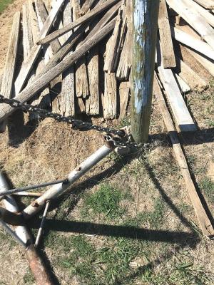 David Arko built his homemade post puller last winter so he could remove an old windbreak fence this spring. He built the puller from materials that were part of the fence he is taking down, using oil field pipes that the previous property owner had used for fence rails.