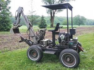 “Mounting the backhoe on the frame took some thought,” says Petersen. “I wanted to make a 360-degree table, but the mechanism was too expensive. I retained the swing mechanism that was on it. As it is, it works great. I use it at home, digging rocks out, and the neighbors call me to dig up water lines and other things.”