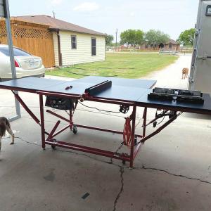 Bond had seen a similar table on YouTube and patterned his after it, but with the table saw and routers added. He started with 2-in. steel tubing for the frame. The base unit is 3 by 6-ft. with a 3 by 3-ft. wing to either side and a 3 by 6-ft. wing to the rear.