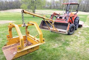 “It makes life easier, especially if you’re working by yourself,” he adds. “I can pull up to a lawn mower, slip a chain into the boom end, and pick it up to work on it or move it. I can reach across a fence with it and pick up an implement. It’s a cheap way to expand the uses of your tractor and loader.”