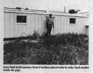 The Holts came up with the idea after they heard about Nebraska farmers who used abandoned, underground Army ammunition dumps, Colorado farmers who used boxcars, and other pork producers who remodeled mobile homes for swine use.