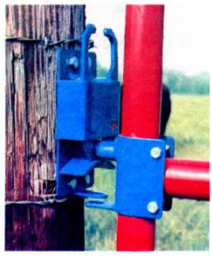 Also available is a "gate stopper" de-signed to hold any hinged gate in the open position. It consists of a steel rod held up by two steep flaps and a spring. You squeeze the flaps together to release the rod, then push it down into the ground. Keeps the gate open even in high winds.